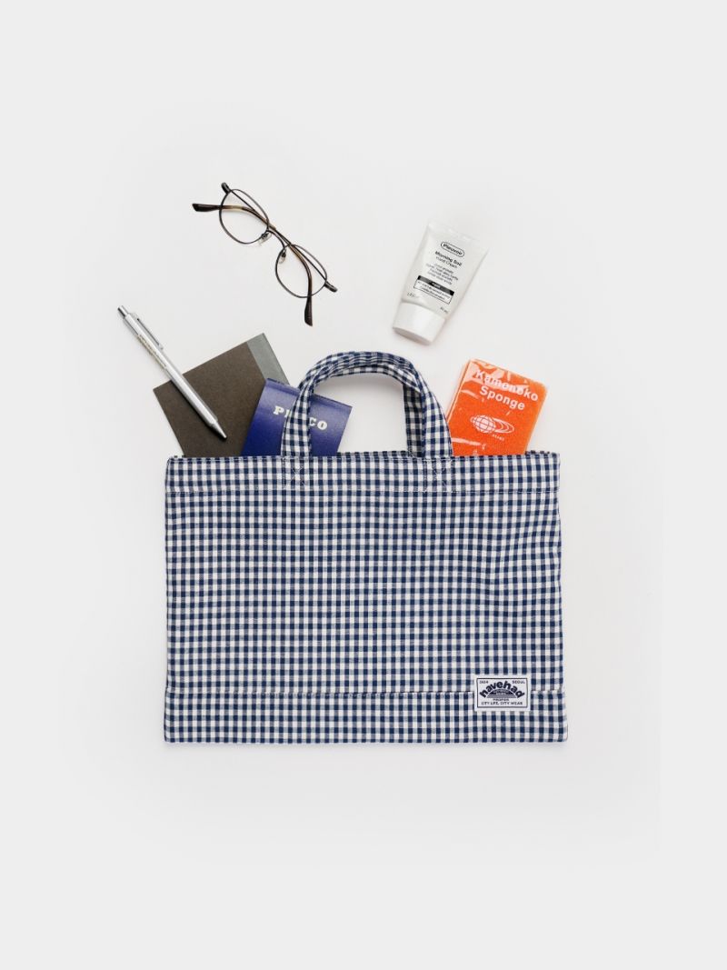 여름날의 청량감을 담은 깅엄 체크 패턴의 원단으로 만들어진 해브해드 토트백을 소개합니다. 탄탄한 20수 깅엄 체크원 단으로 만들어져 모양이 무너지지 않으며 내부에 수납공간이 있어 간단한 액세서리류의 보관이 가능합니다.