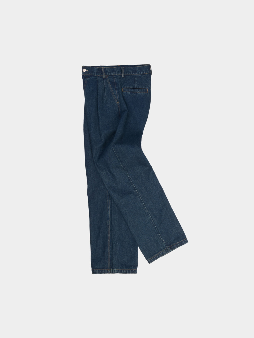 Loose Fit Pin-tuck Denim Pants (Deep Indigo)