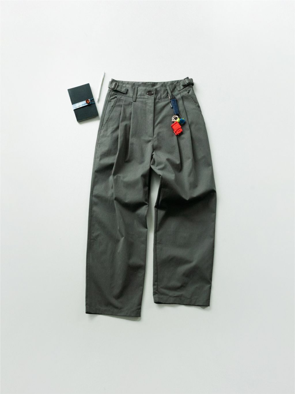 세미 오버핏 실루엣으로 일자로 깔끔하게 떨어지는 팬츠입니다. 허리 양쪽의 조절 스트랩으로 체형에 맞게 사이즈를 조절할 수 있어 별도의 벨트 없이도 착용이 가능합니다.