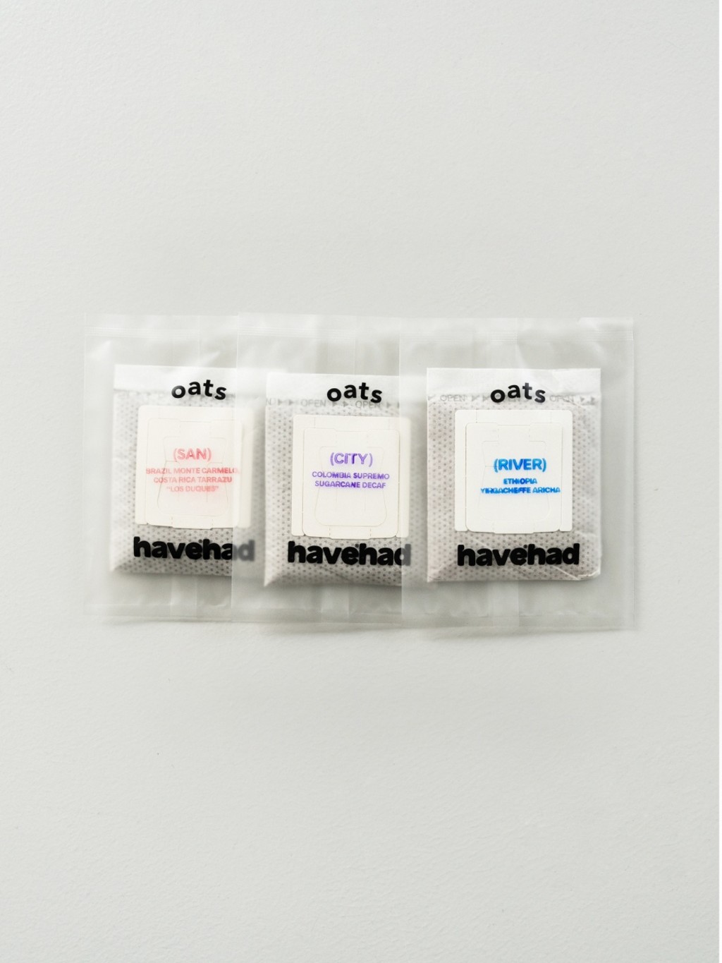 Havehad × Oats Coffee 협업 드립백 박스. 3가지 개성 있는 블렌드를 한 박스에 담았습니다.