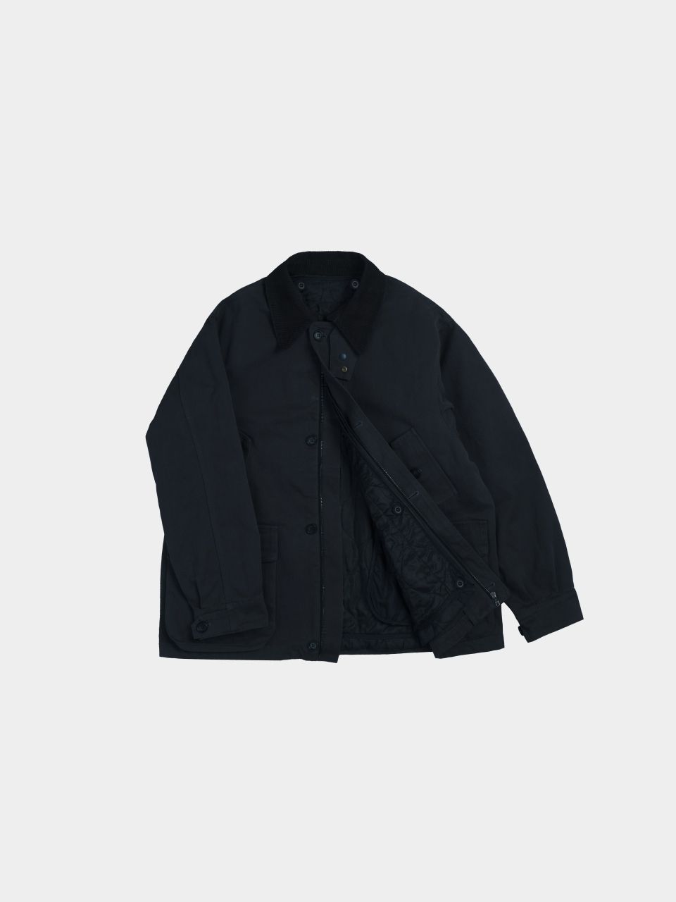 코듀로이 카라와 보온 스트랩, 그리고 안쪽에 더한 체크 안감이 자켓의 깊이를 더합니다. 외형은 단정하지만, 입는 사람의 움직임에 따라 은근하게 드러나는 디테일이 자연스러운 개성을 만들어줍니다.