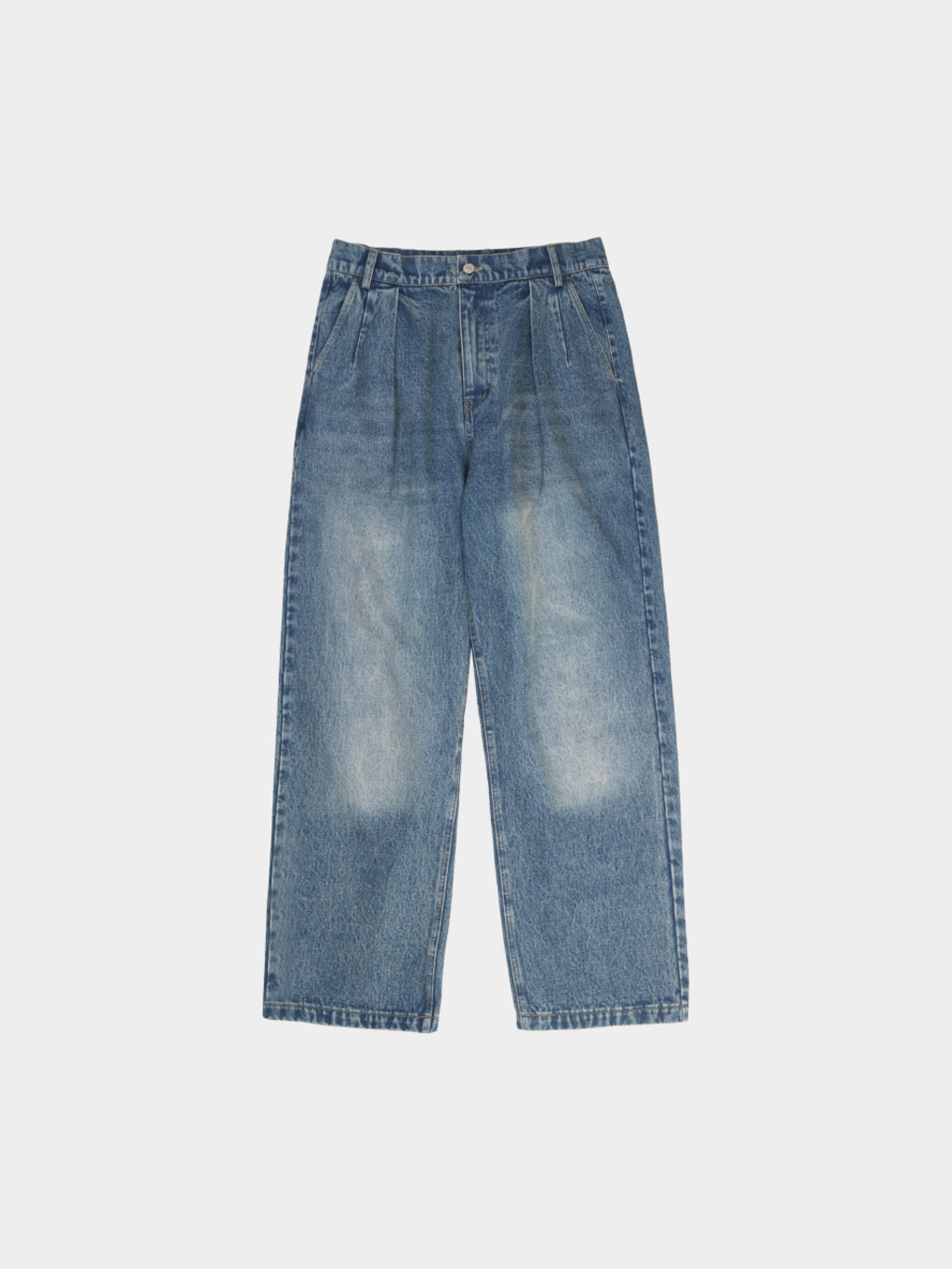 루즈하게 떨어지는 스트레이트 핏과 깊이 잡힌 핀턱이 특징인 데님 팬츠입니다. 와이드한 실루엣이 주는 여유로움 덕분에 활동이 많은 날에도 편안하게 입을 수 있고, 단단한 10수 프리미엄 데님 원단은 사계절 내내 안정적인 착용감을 유지합니다.