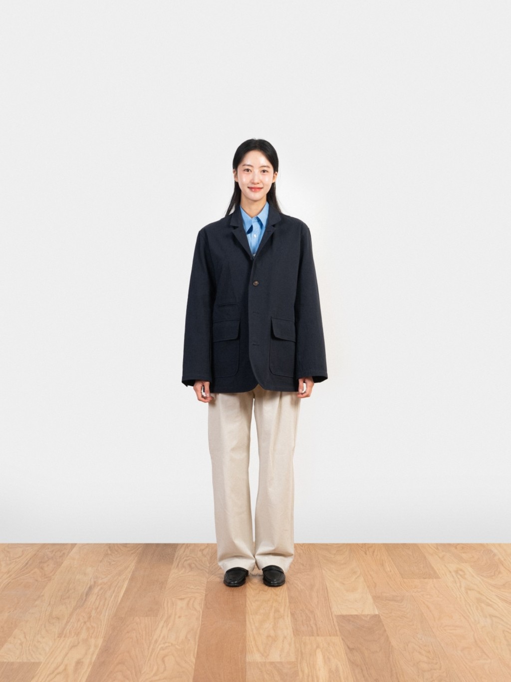 자연스럽게 떨어지는 어깨선과 세미 오버핏 디자인은 편안하면서도 깔끔한 실루엣을 제공합니다. 3버튼 타입으로 다양한 카라 스타일을 연출할 수 있어, 상황에 따라 포멀하거나 캐주얼한 분위기를 자유롭게 표현할 수 있습니다.