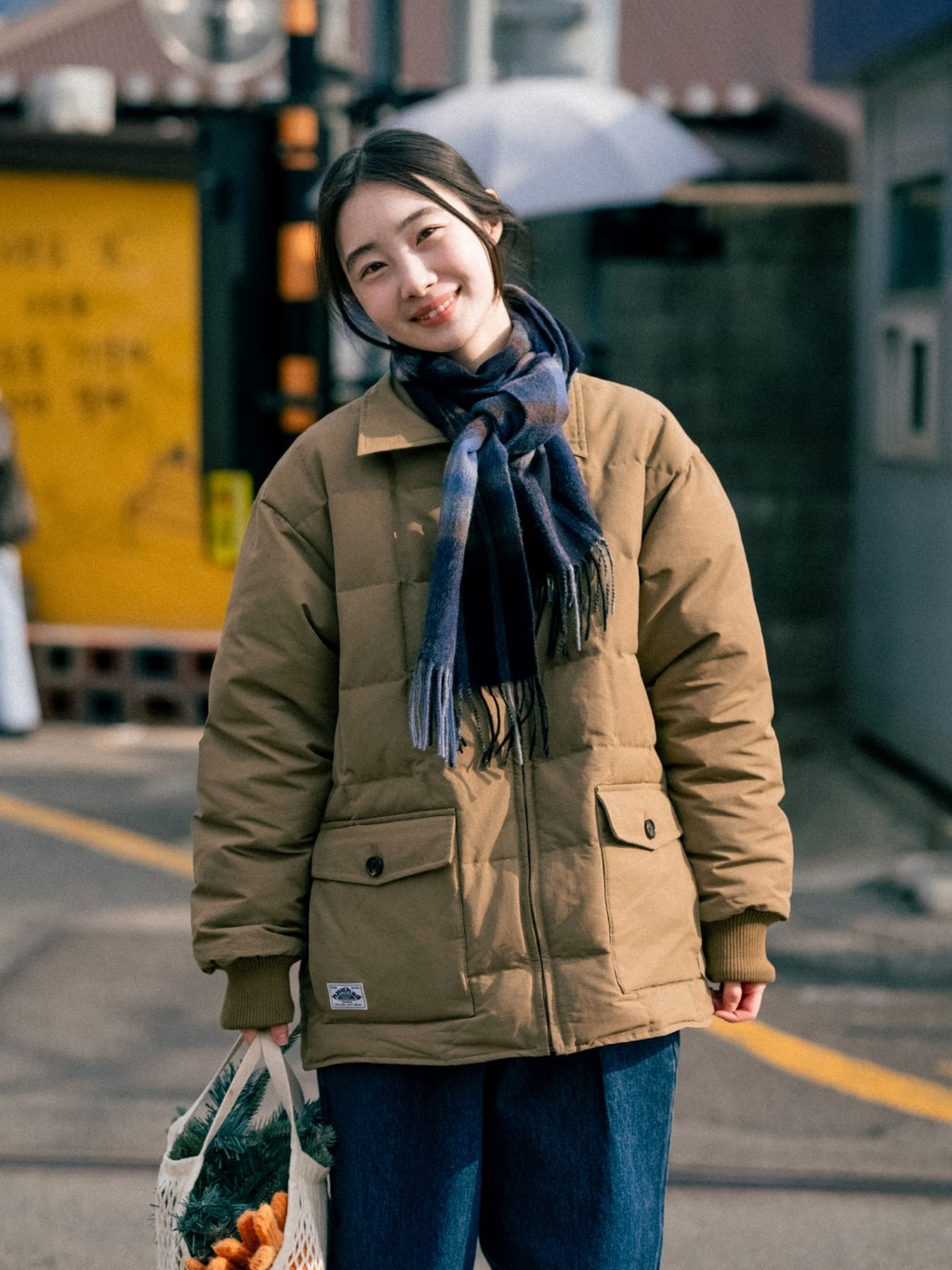 차분한 체크 패턴으로 겨울 옷차림에 균형을 더하는 머플러