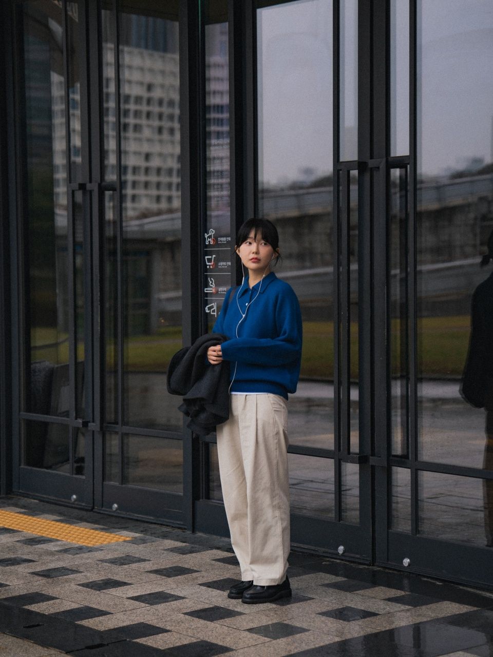 이번 카라 니트는 색감 하나하나에 정성을 담아, 깊고 선명한 코발트 블루와 차분하고 담백한 차콜, 두 가지 컬러로 선보입니다.
