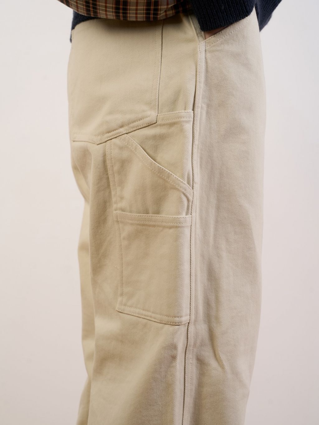 전통적인 카펜터 팬츠의 실용성을 현대적으로 재해석하여 일상에서 활용하기 좋으면서도 독창적인 스타일을 더했습니다. 견고한 7수 트윌 코튼 원단과 정교한 디테일로 마감되어, 실용성은 물론 내구성까지 겸비한 믿음직스러운 팬츠입니다.