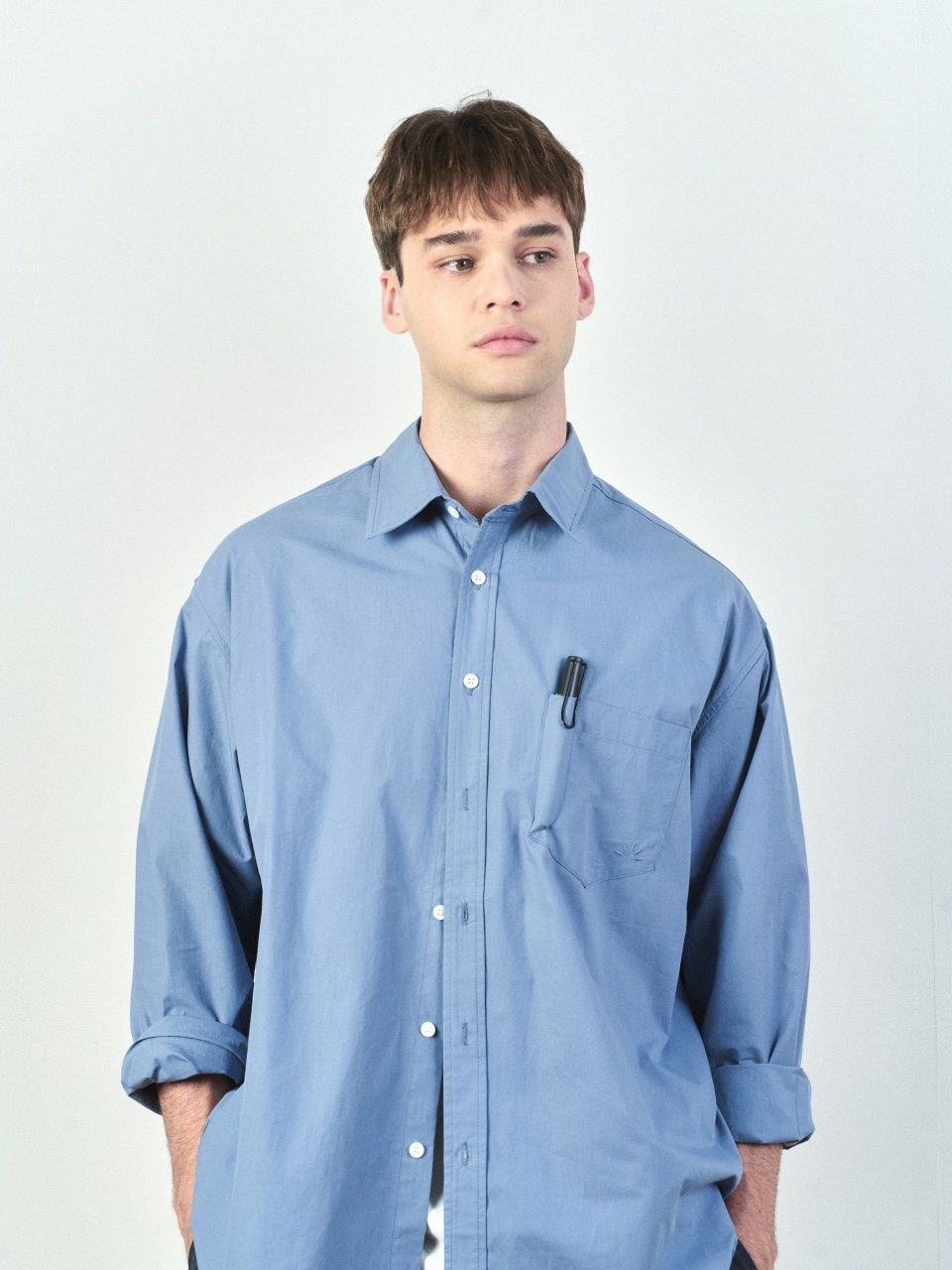 심플한 로고 자수가 더해진 펜 포켓으로 포인트를 준 스탠다드 셔츠. 도시 속 일상에 어울리는 데일리 아이템입니다.