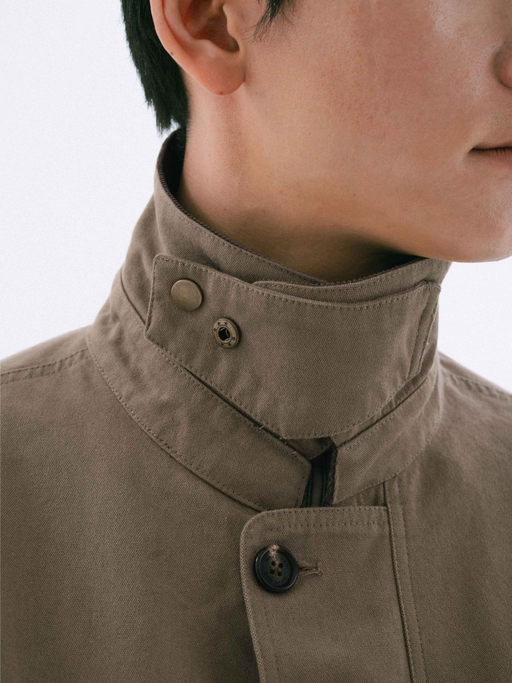 10수 캔버스 원단을 사용해 형태감이 단단하게 잡히며, 착용할수록 자연스러운 주름과 질감이 깊어집니다. 묵직한 중량감 속에서도 움직임이 편안하도록 패턴을 세심하게 조정했습니다. 65/35 코튼 나일론 혼방 소재로 생활방수 기능을 더해 일상적인 날씨 변화에도 부담 없이 착용할 수 있습니다.