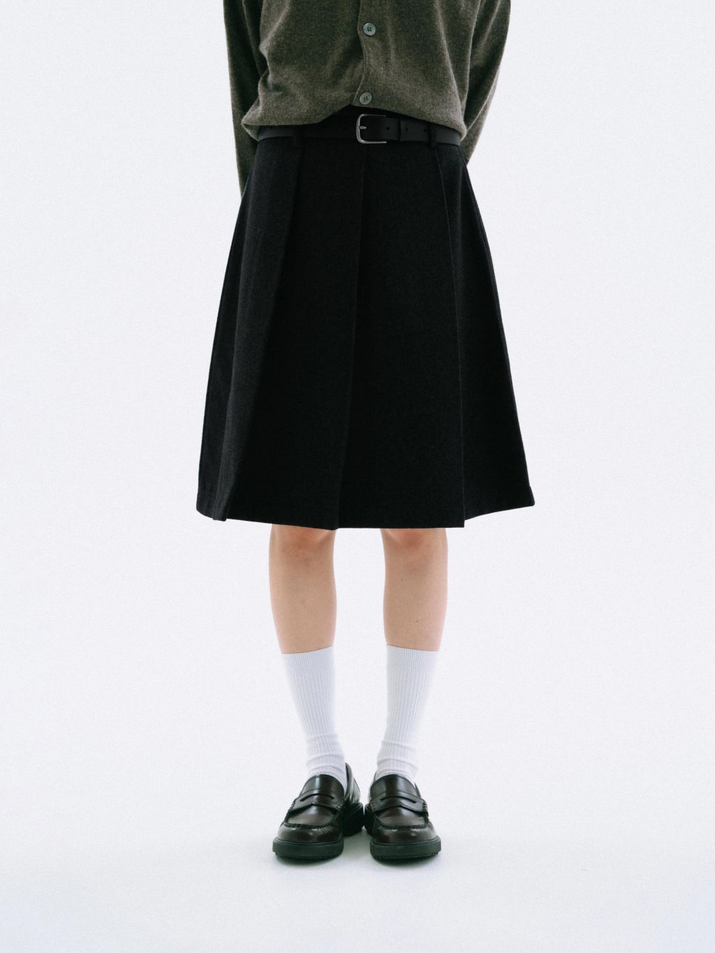 울 블렌드 소재로 포근한 터치감과 안정적인 형태감을 지닌 플리츠 스커트입니다. 규칙적인 주름이 만들어내는 선의 흐름이 담백하고 정갈한 인상을 주며, 무릎을 살짝 덮는 길이로 다양한 겨울 아우터와 균형 있게 어우러집니다. 스타킹이나 부츠와 함께 매치하면 계절감 있는 룩으로 자연스럽게 완성됩니다.