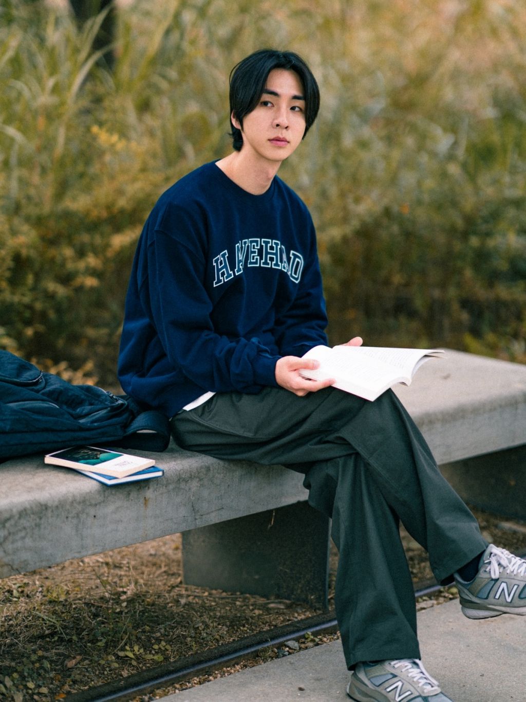 캠퍼스 무드의 로고 디테일이 단조로움을 덜어주며, 깔끔하면서도 오래 입기 좋은 포인트를 더합니다.