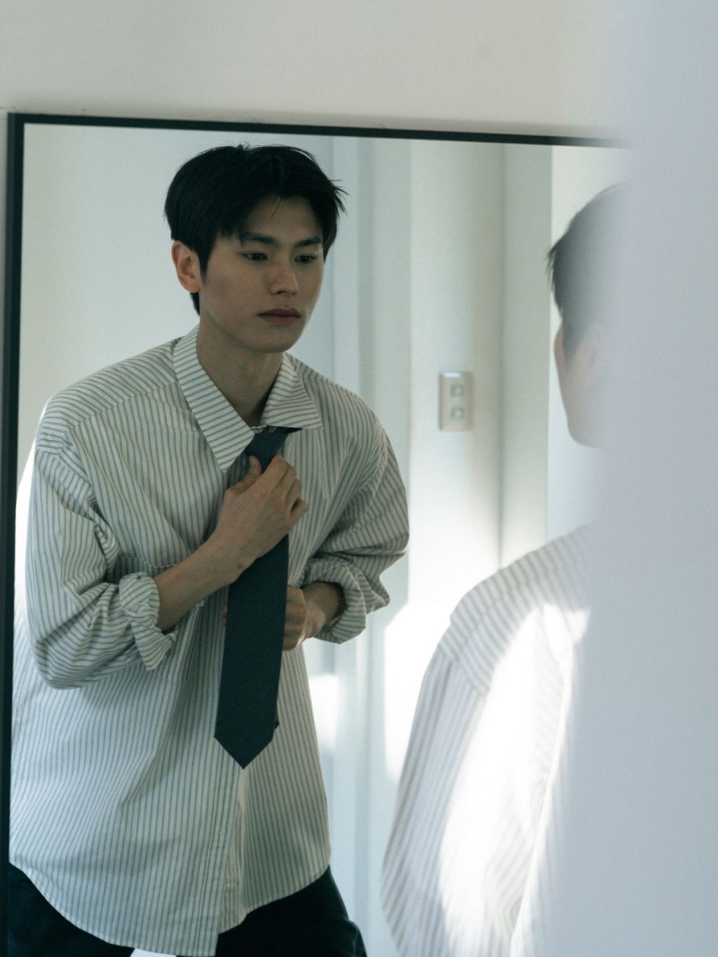 클래식 스트라이프와 실용 디테일이 돋보이는 사계절 셔츠