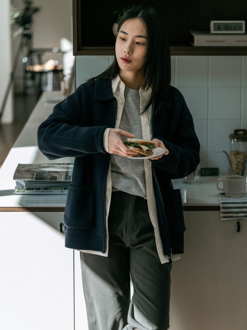 투웨이 집업 디자인으로 아래 지퍼를 열어 A라인으로 연출할 수 있어 레이어드 스타일링에 유연하게 대응하며, 울 특유의 탄성과 견고한 로우 게이지 짜임으로 내구성과 실용성을 갖추었습니다. 계절의 경계에서도 자주 손이 가는 제품입니다.