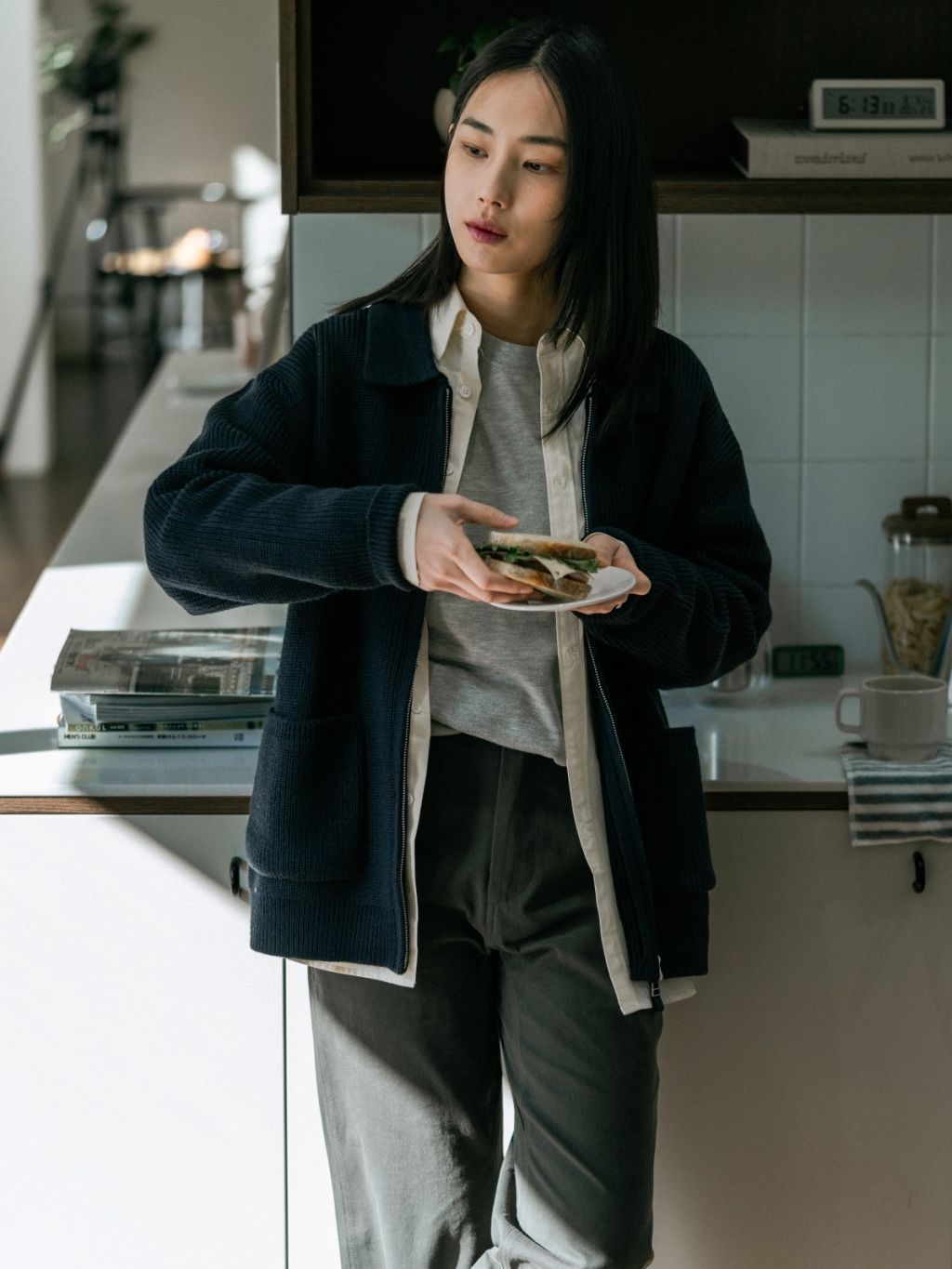 적당한 무게감과 부드러운 울 혼방 소재로 일교차가 큰 간절기에도 부담 없이 착용할 수 있습니다. 입체적인 짜임과 부드러운 촉감이 특징이며, 밸런스 있는 카라와 여유로운 실루엣이 조화를 이루어 단독 착용은 물론 다양한 레이어드에도 자연스럽게 어울립니다.