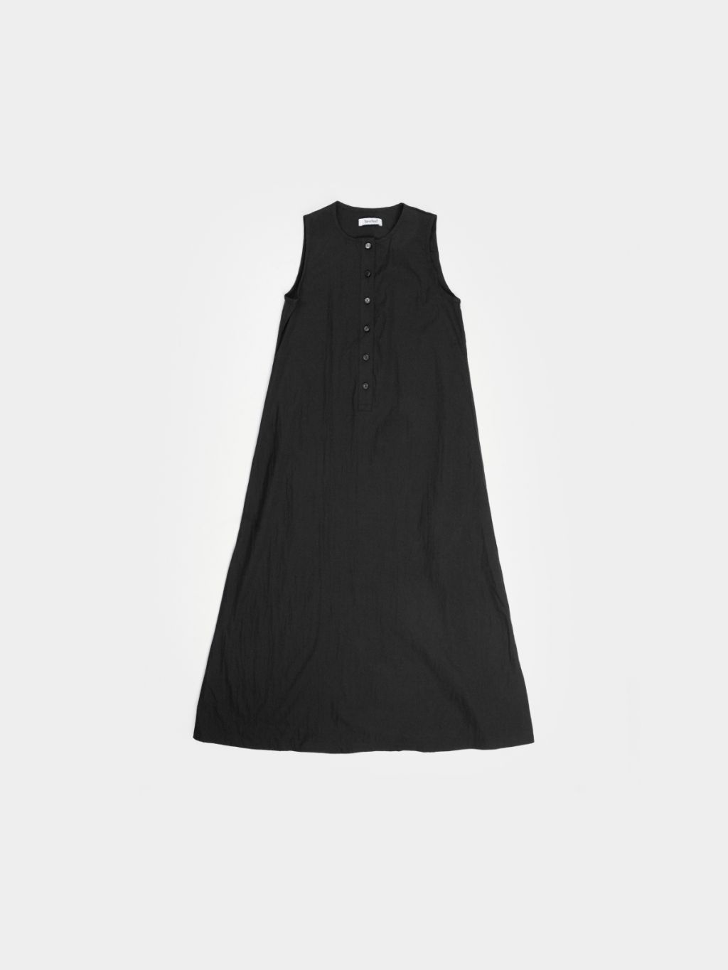 레이온과 나일론 혼방 원단으로 제작해 구김이 적고 매트한 질감이 돋보이는 슬리브리스 롱 원피스입니다. 앞 단작 버튼 여밈으로 디테일을 더했으며, 단독 착용은 물론 가벼운 이너, 니트, 셔츠, 아우터와 함께 레이어드해 다양한 스타일로 활용할 수 있습니다. 절제된 디자인과 차분한 소재감이 자연스럽게 어울립니다.