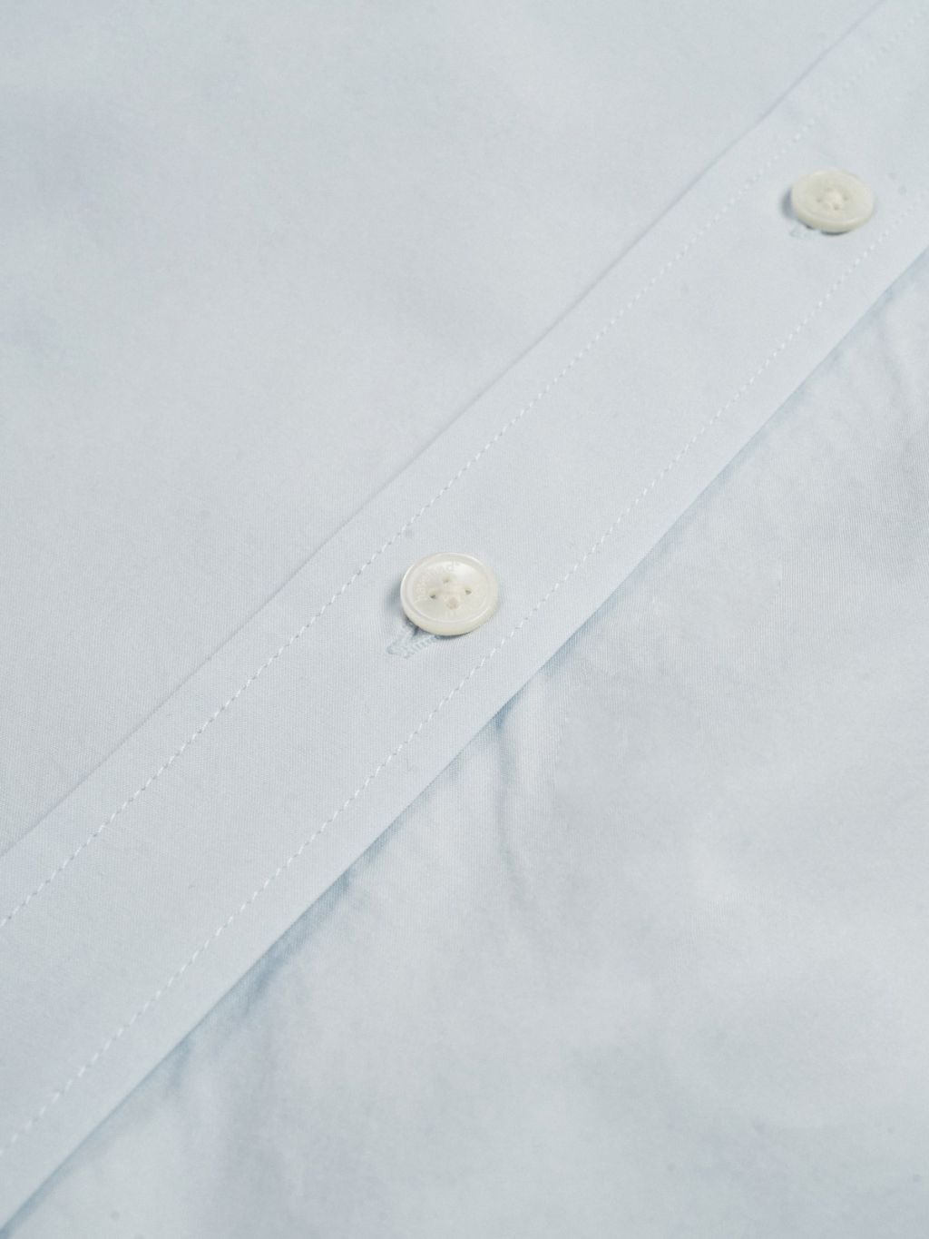 군더더기 없는 미니멀 디자인으로 다양한 스타일과 자연스럽게 어울리는 스탠다드 핏 셔츠입니다. 고밀도 40수 텐셀 원단에 바이오 워싱을 더해 부드럽고 촘촘한 조직감이 깔끔한 표면과 편안한 착용감을 제공합니다. 은은한 광택의 자개 단추가 포인트가 되며, 단독 착용뿐 아니라 니트나 재킷 안 이너로도 활용도가 높습니다.