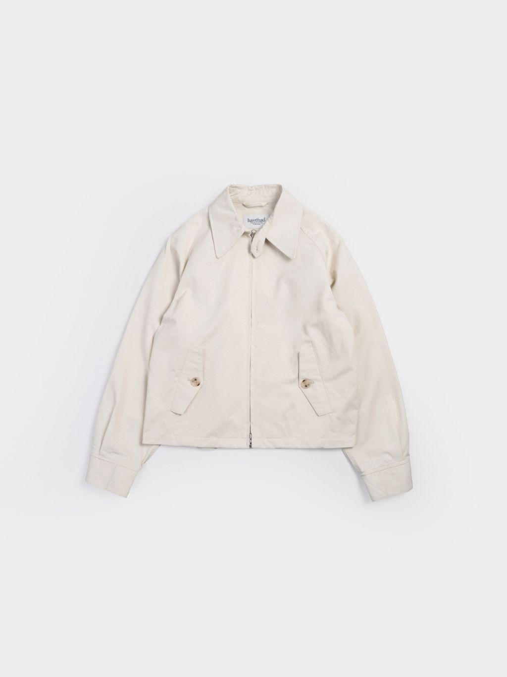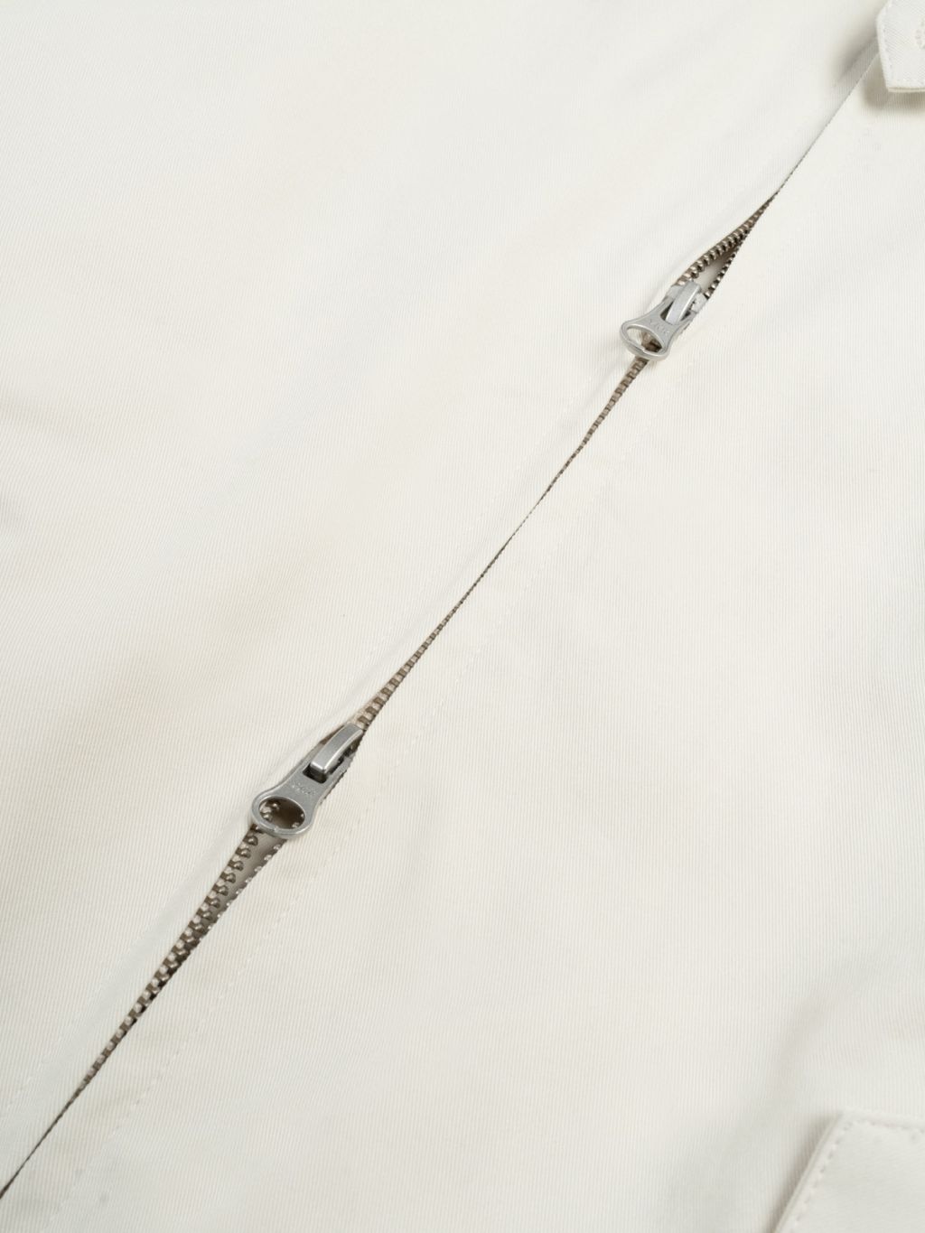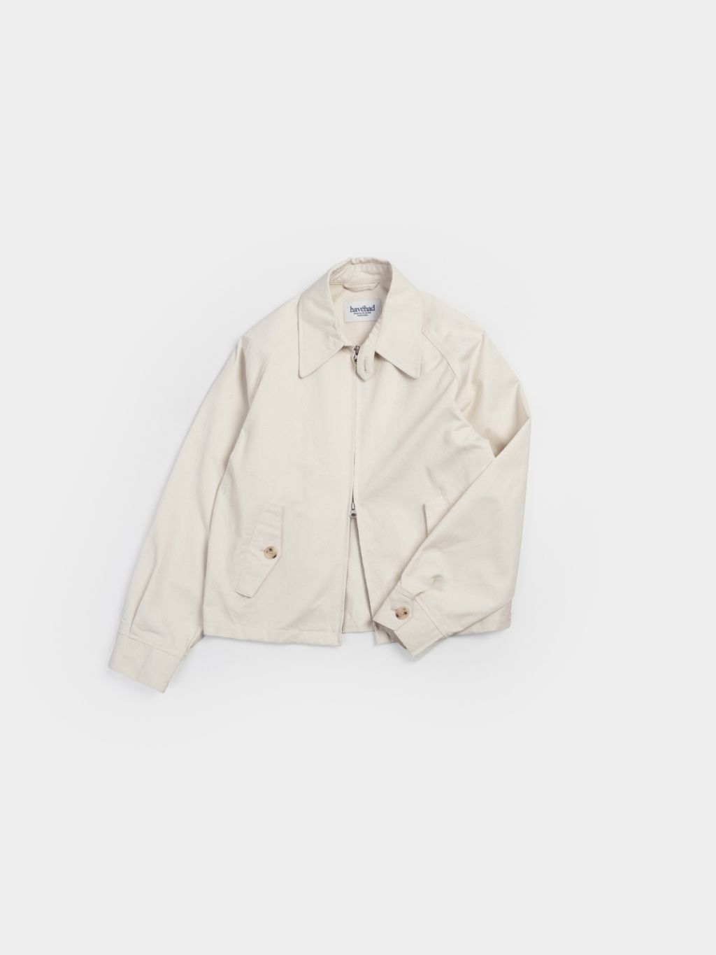 1940년대 미국 스포츠웨어 브랜드 맥그리거의 드리즐러를 해브해드 스타일로 재해석한 재킷입니다. 코튼·폴리에스터 혼방 소재로 구김이 적고 깔끔한 실루엣을 유지하며, 활동성을 고려한 2way 지퍼 여밈을 적용했습니다. 안감은 생략하되 시접 전체를 감싸 마감하여 완성도를 높였으며, 간절기부터 가벼운 아우터로 활용하기 좋은 베이직한 디자인입니다.