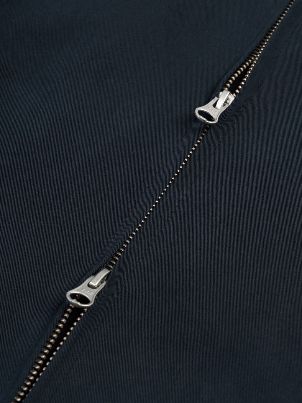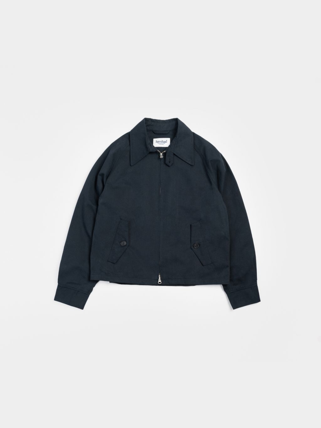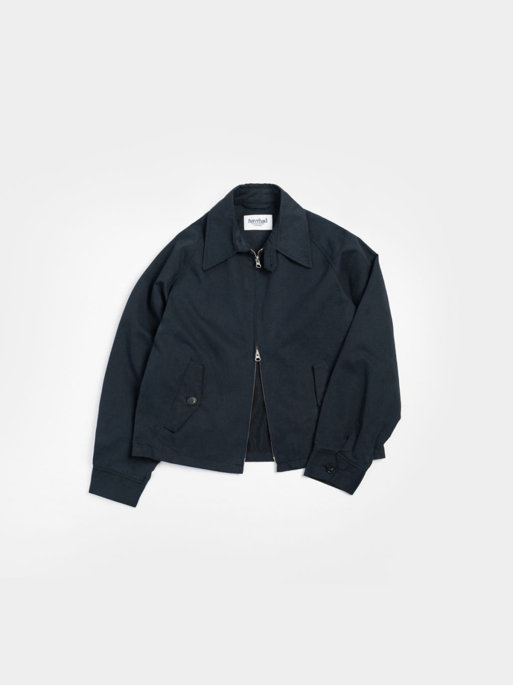 1940년대 미국 스포츠웨어 브랜드 맥그리거의 드리즐러를 해브해드 스타일로 재해석한 재킷입니다. 코튼·폴리에스터 혼방 소재로 구김이 적고 깔끔한 실루엣을 유지하며, 활동성을 고려한 2way 지퍼 여밈을 적용했습니다. 안감은 생략하되 시접 전체를 감싸 마감하여 완성도를 높였으며, 간절기부터 가벼운 아우터로 활용하기 좋은 베이직한 디자인입니다.