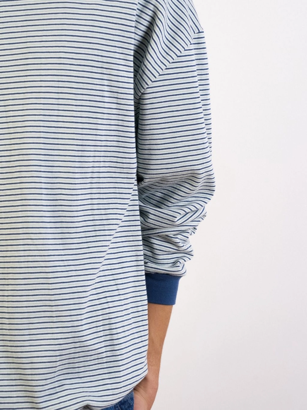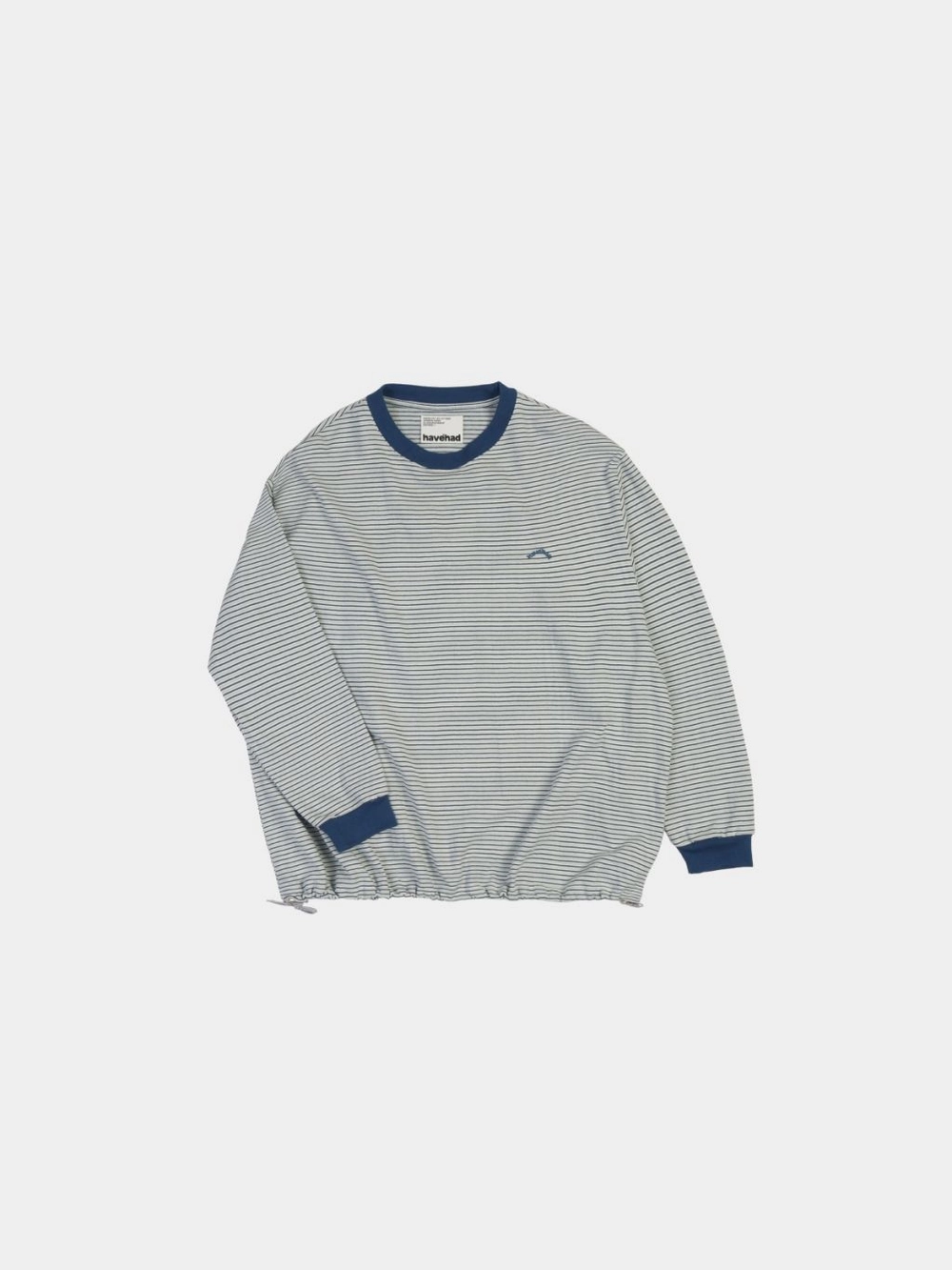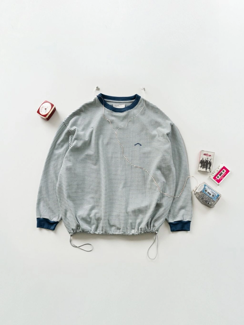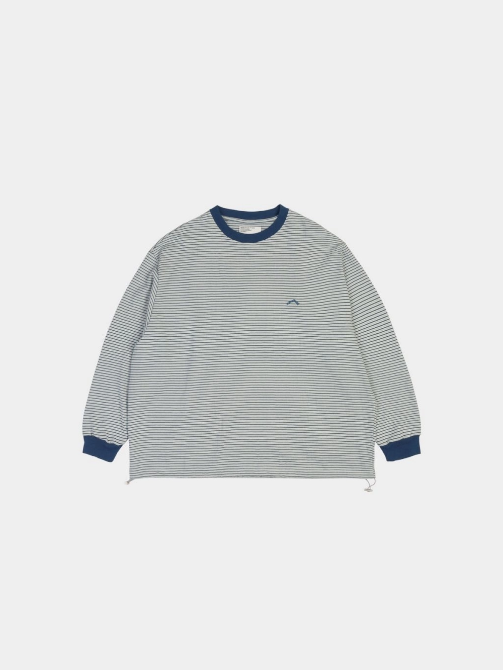 스트링 디테일로 볼륨 조절이 가능한 롱슬리브 티입니다. 두 가지 컬러가 교차된 스트라이프 패턴이 단순한 기본 티에 개성을 더하며, 밑단 스트링을 조여 입체적인 실루엣을 연출하거나 자연스럽게 풀어 편안하게 착용할 수 있습니다. 동일한 톤의 시보리 배색과 작은 로고 자수가 전체를 단단히 마무리합니다. 간절기부터 사계절 내내 활용할 수 있는 실용적인 구성이 특징입니다.