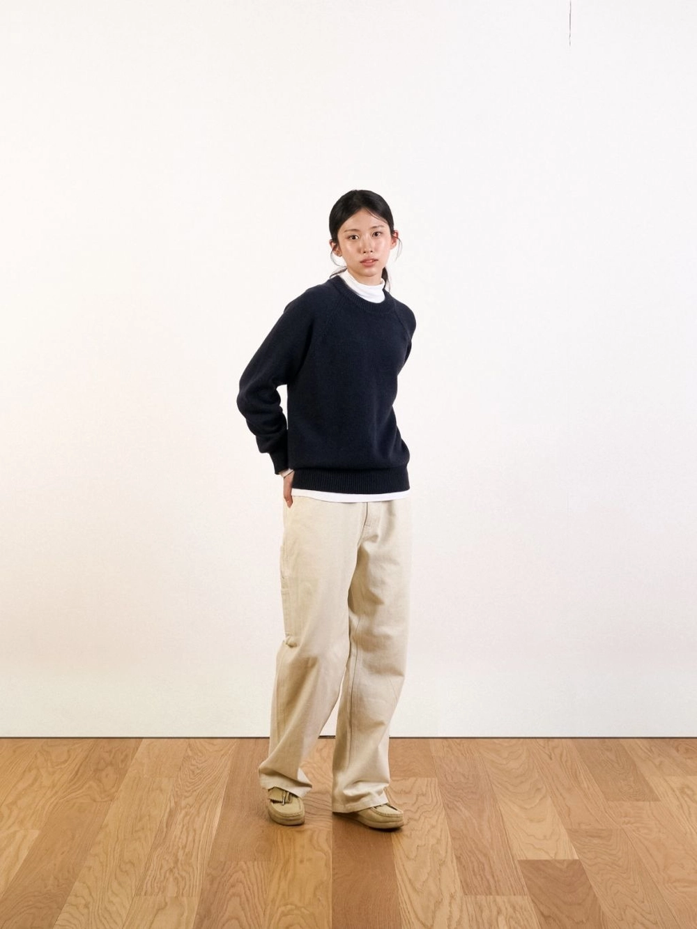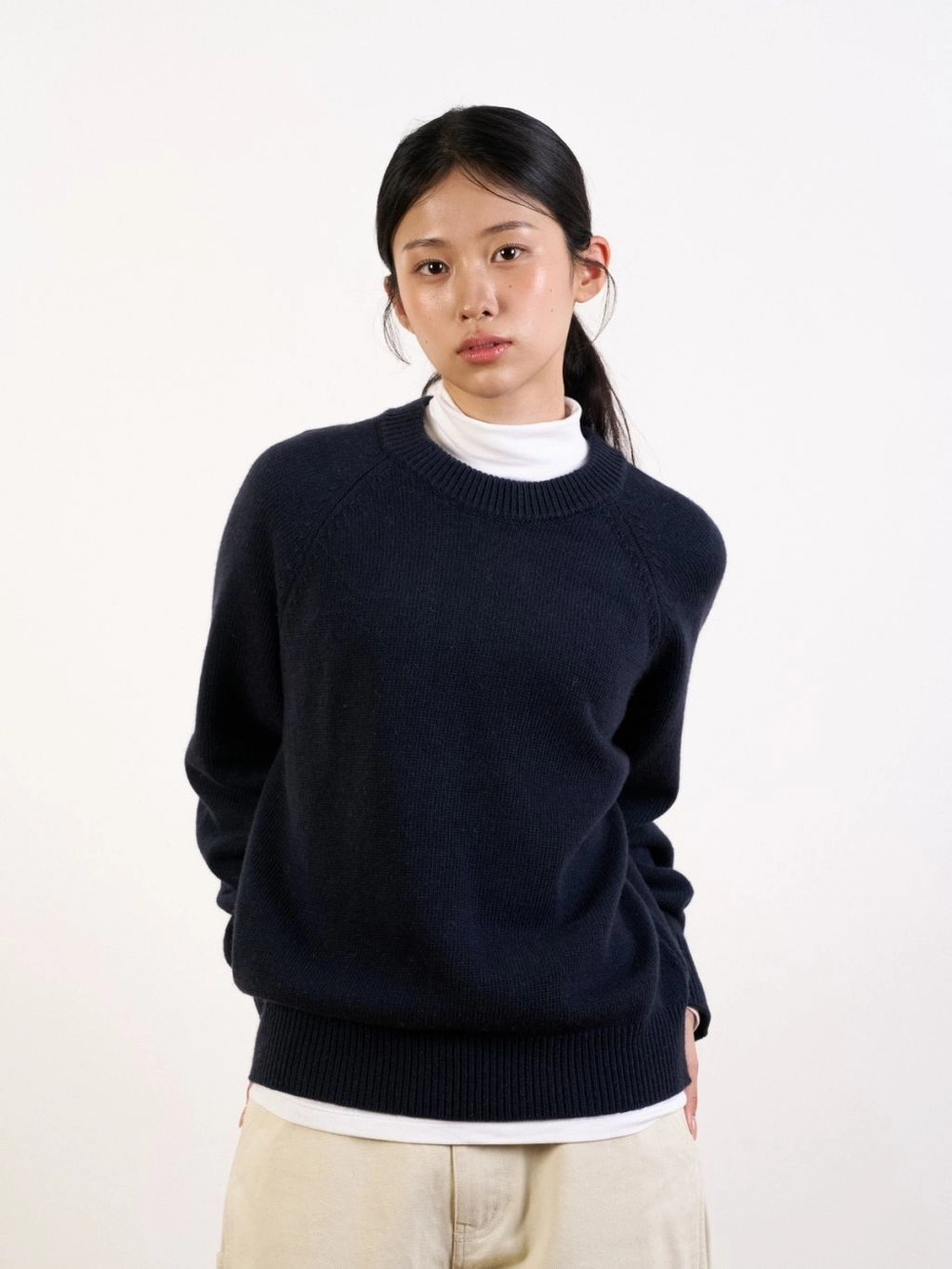 야크와 울을 적절히 혼합해 완성된 크루넥 니트입니다. 가장 기본적인 형태지만 내구성 있는 넥라인, 여유로운 품, 자연스럽게 떨어지는 레글런 어깨선으로 차별화된 매력을 담았습니다. 맨살에도 닿을 만큼 부드럽고 보온성이 좋아 계절의 경계 없이 착용할 수 있으며, 단독은 물론 셔츠나 티셔츠와 레이어드해도 자연스럽게 어울립니다.