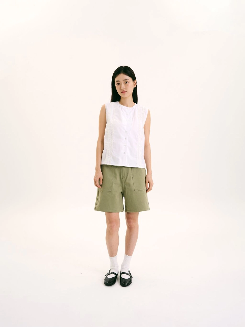 차분한 컬러감으로 다양한 상의와 자연스럽게 매치 가능.