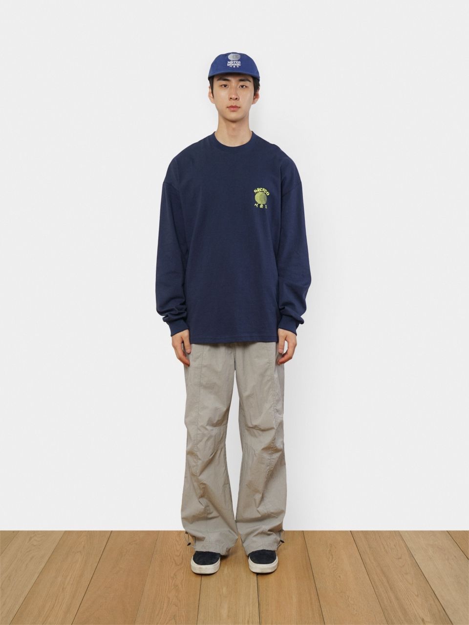 원단 또한 톡톡한 무게감의 면 터치감에 바이오 워싱을 더하여 부드러운 질감을 더했고, 세탁 후 뒤틀림이 적고 뒷 넥 라인도 헤리 테이핑 작업을 하여 견고함을 높였습니다.
