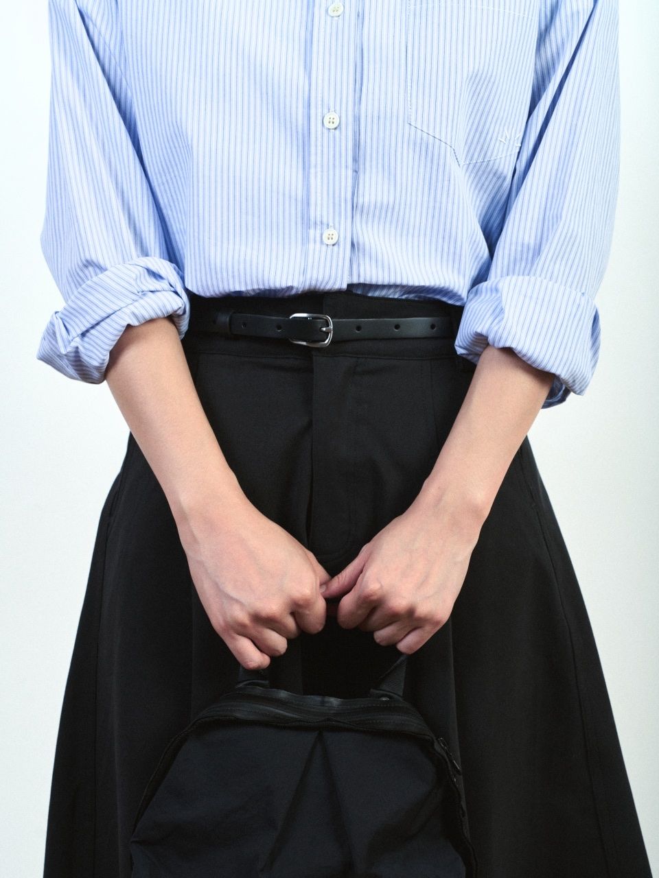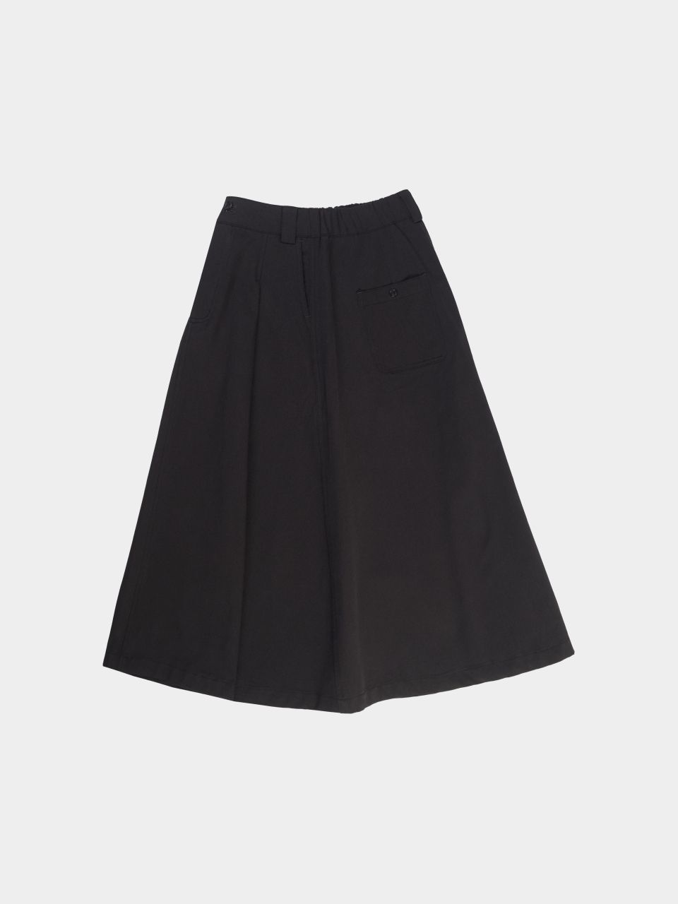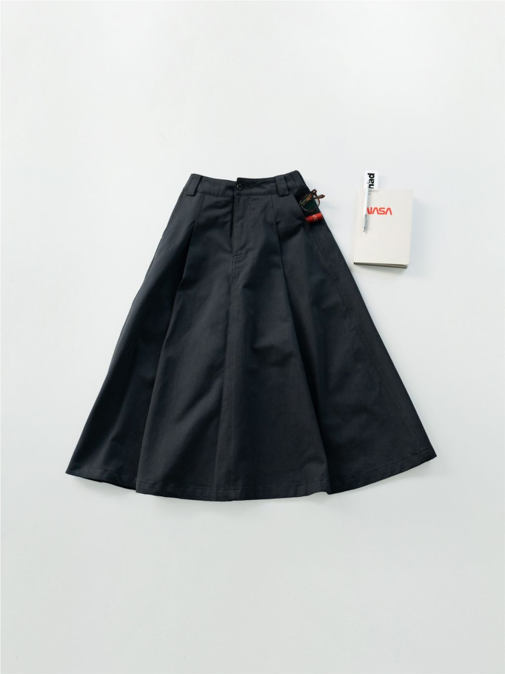 치노 팬츠의 구조적인 디테일을 스커트에 옮겨, 실용성과 편안함을 모두 담았습니다. 원턱 디테일과 플레어한 A라인이 자연스러운 볼륨을 완성합니다.