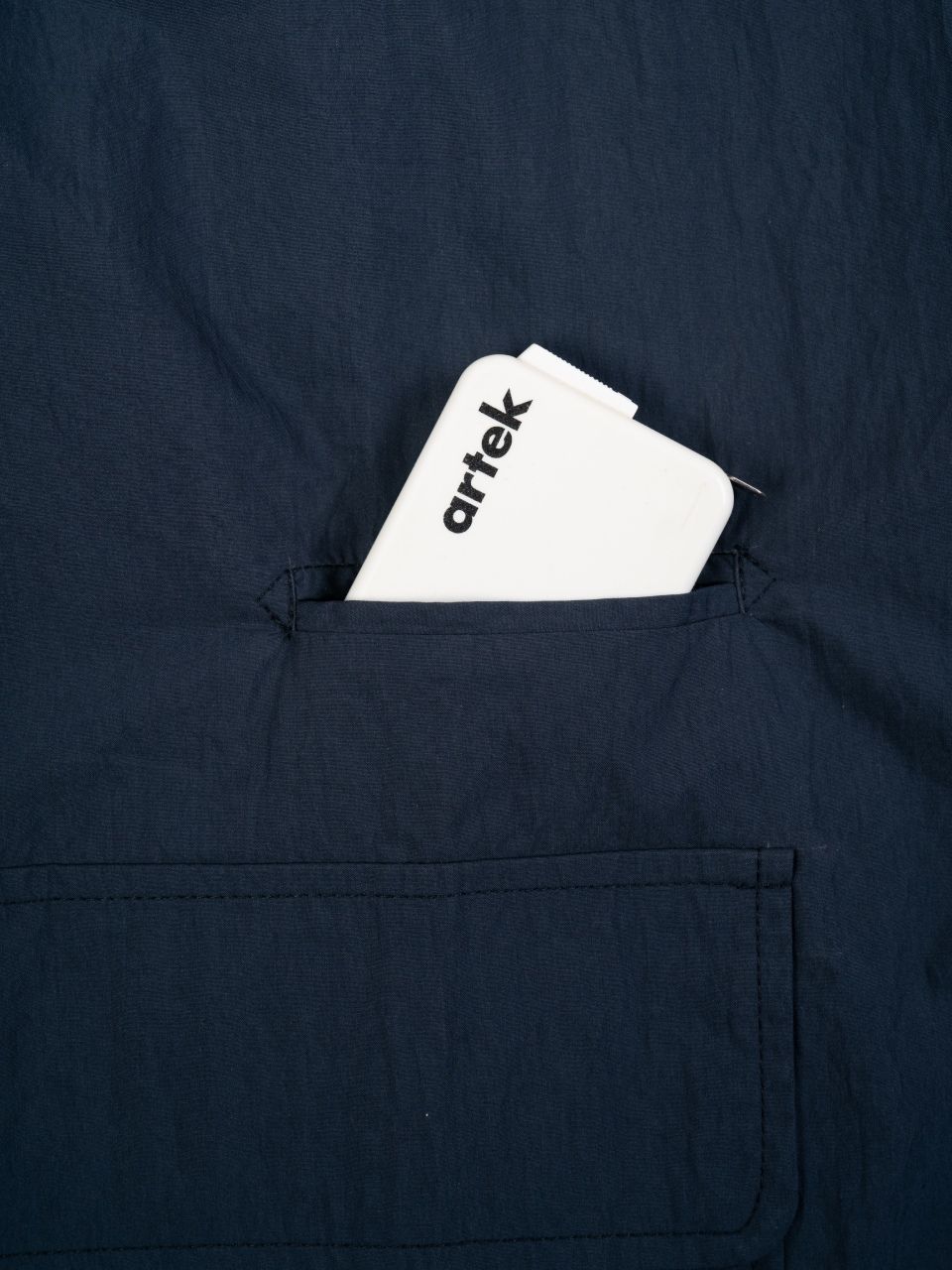내부 테이핑 마감과 가슴 부분 톤온톤 자수는 전체적으로 미니멀한 인상을 유지하면서도 은은한 포인트가 됩니다.