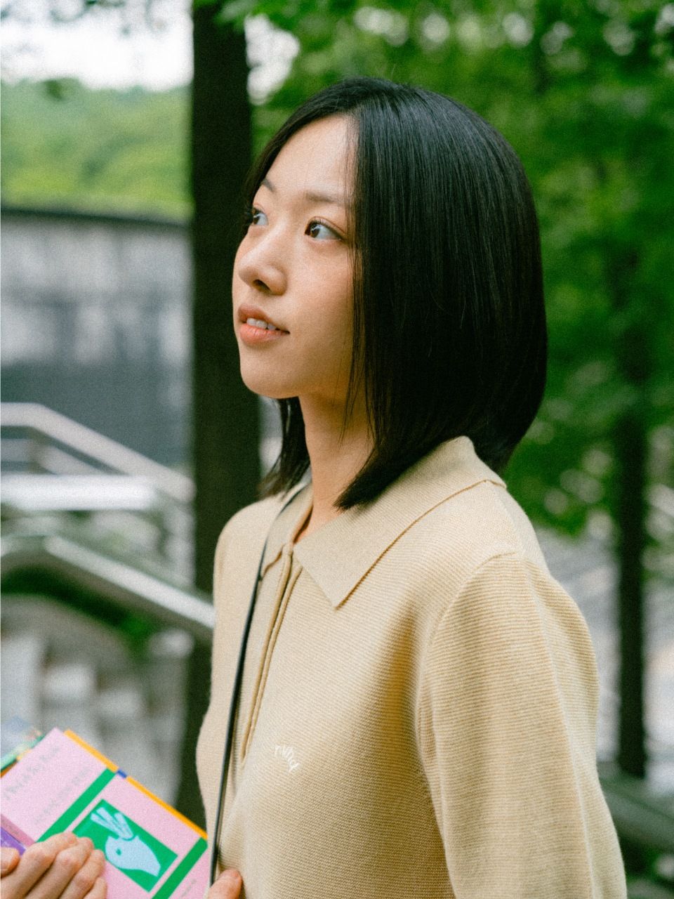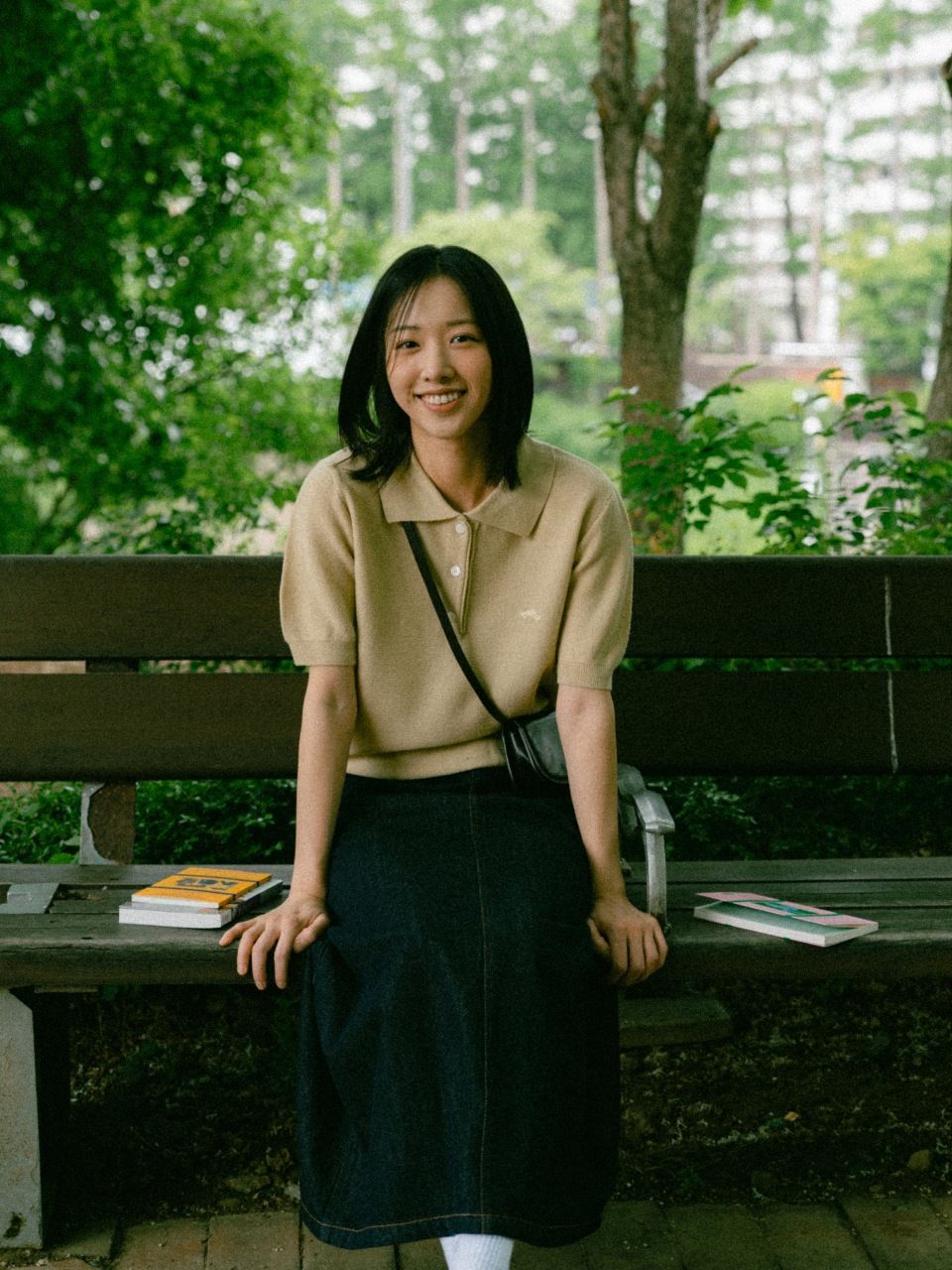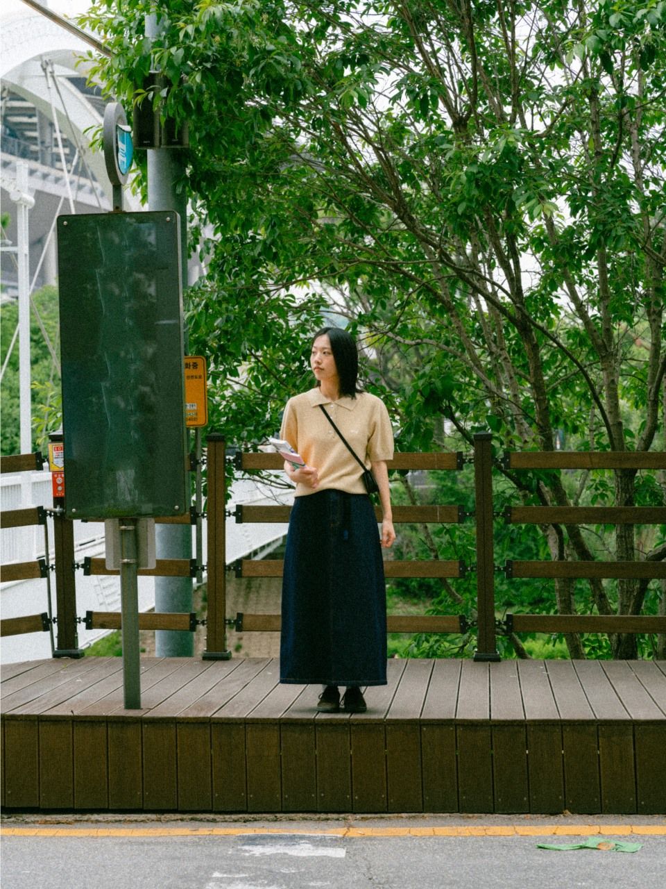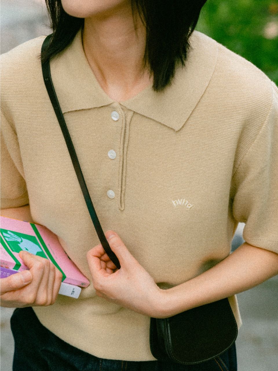 "무더운 오후, 카페 유리창 밖으로 내리는 비를 보며 노트북을 두드리는 시간. 에어컨 바람이 차갑게 느껴지지 않고, 그렇다고 더위에 지치지도 않게. 이 니트는 그런 날씨와 공간 속에서 딱 적당한 무게로 자리합니다. 치노 팬츠나 데님, 어떤 하의 위에도 무리 없이 어울리면서 단정한 인상을 남깁니다."