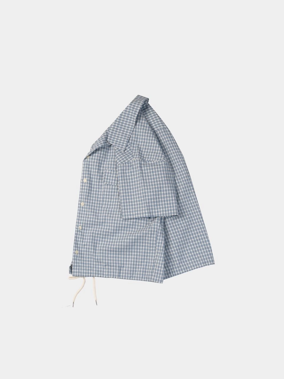 밑단 스트링과 오픈카라 구조는 다양한 착장에 자연스럽게 녹아들 수 있도록 도와줍니다. 클래식한 윈도우 체크 패턴은 여름날 룩에 균형 잡힌 포인트가 되어줍니다.