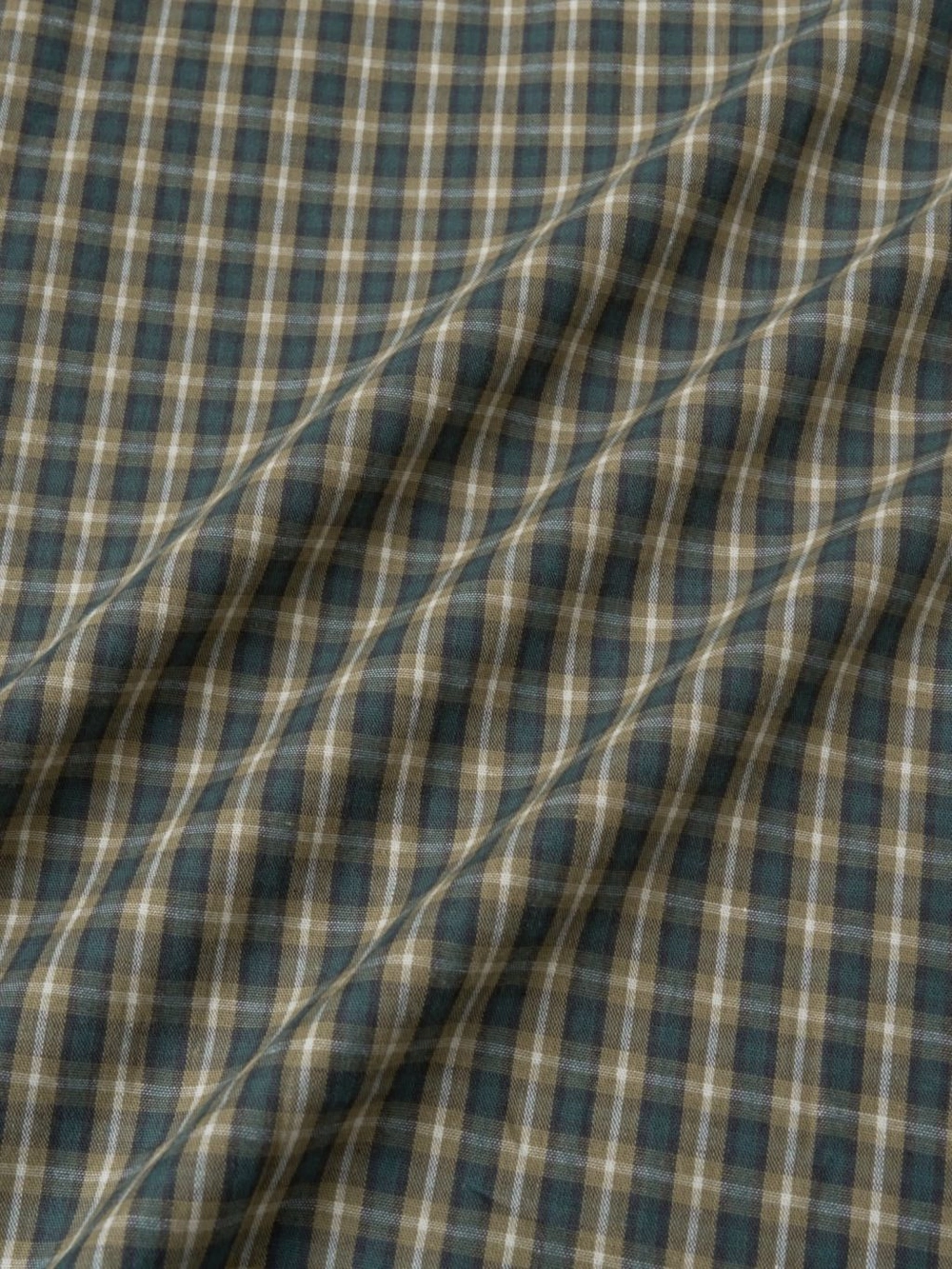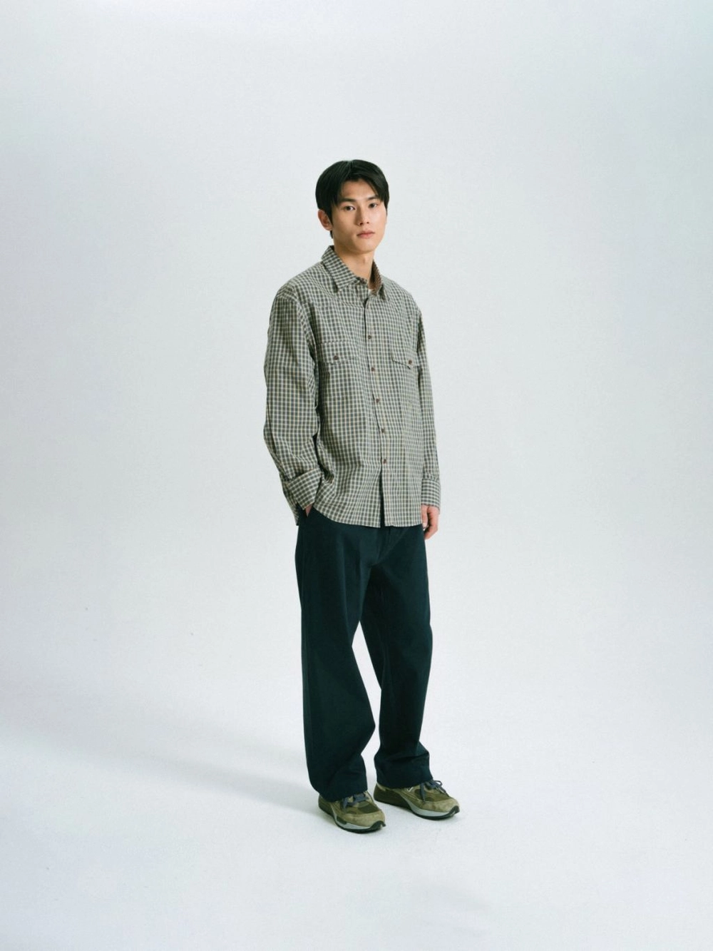 빈티지한 색감의 체크 원단을 사용하여 고급스러운 분위기를 살렸습니다. 어깨 부분의 요크 디테일과 포켓 플립이 달린 더블 포켓 등 전통적인 웨스턴 셔츠의 요소를 살리면서, 허리 라인이 타이트한 옛날 스타일과 달리 넉넉한 실루엣으로 현대적인 착용감을 제공합니다.